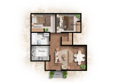 Our spacious One and Two-bedroom apartments boast fully equipped kitchens, updated bathrooms and central heat and AC, recently updated onsite laundry facilities, and well maintained grounds.